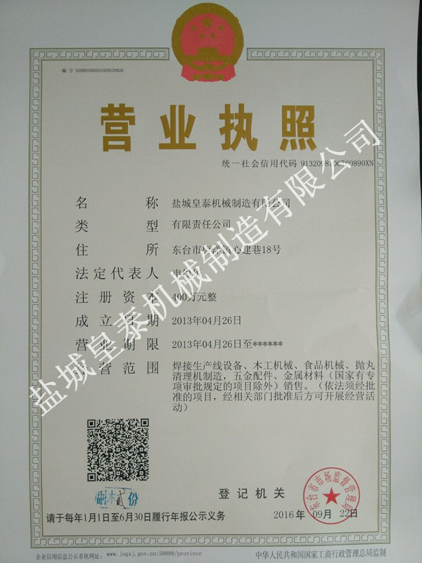 • 鹽城皇泰機械制造有限公司位于江蘇省東臺市三倉工業園,成立于2013年,公司注冊資金400萬元,占地面積8000余平方。